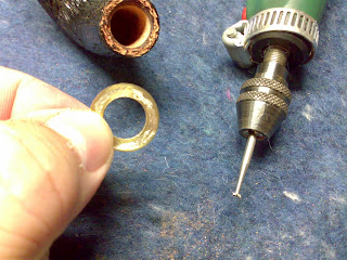 Ξεκινησα λοιπον να την ομορφυνω λιγακι,εκτος απο "φρεσκαρισμα" θα της εβαζα και δαχτυλιδι με χρωμα που δεν ειχα ξαναβαλει. Για αρχη ενα περασμα τρυπανακι 4mm στην οπη του μπολ.